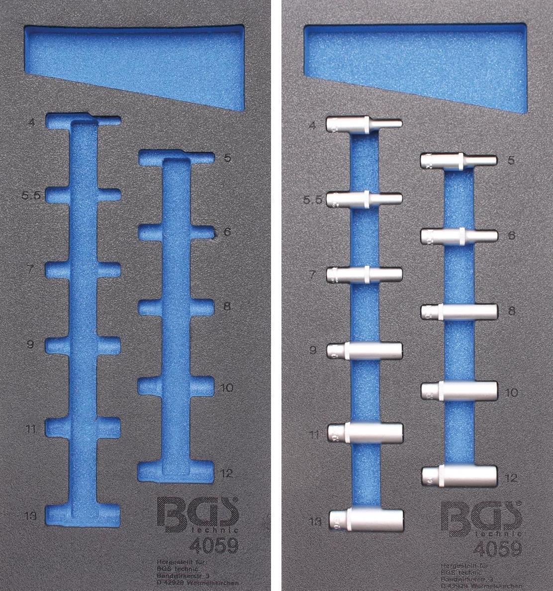 1/3 Werkstattwageneinlage: Steckschlüsseleinsätze 6,3 (1/4), 6-kant, tief, 4-13 mm, 11-tlg. (leer und gefüllt)