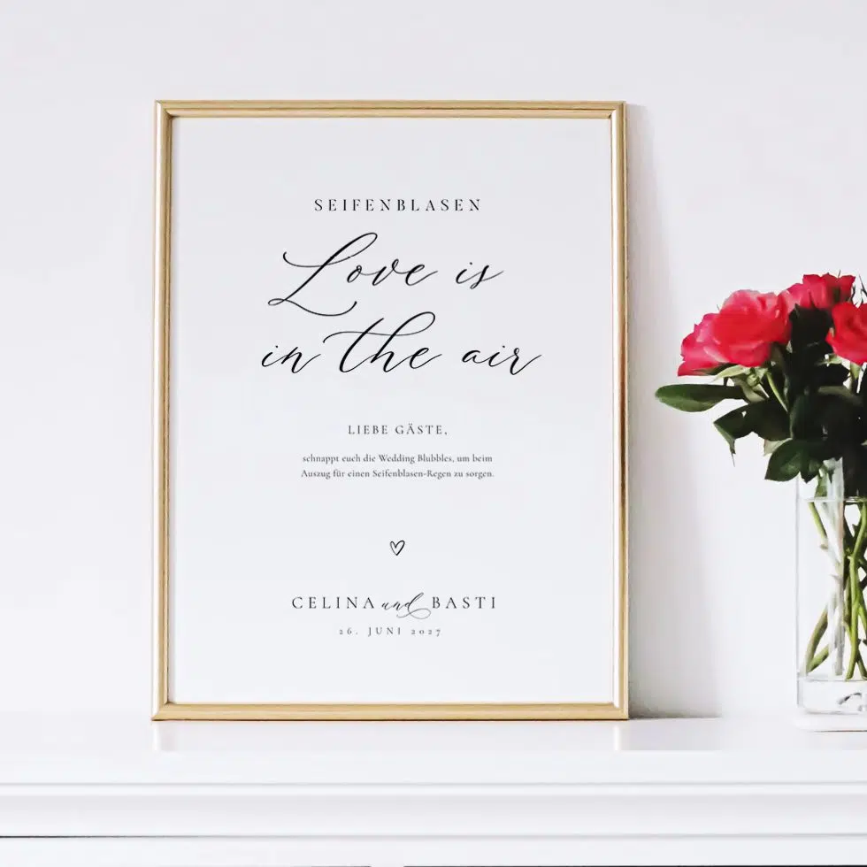 „Love is in the Air“ Schild für die Hochzeit – elegant